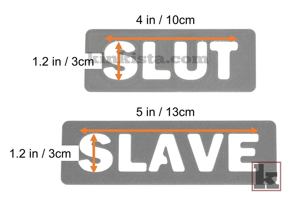 Bring the fantasy of branding into your play with these precision-formed stencils. Made for use with a violet wand or other surface-marking tools, each stencil frames out bold words like SLAVE and SLUT, leaving your submissive’s skin to bear the mark you choose.