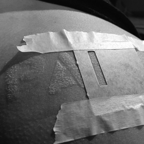 Apply the stencil, secure it with adhesive dressing, and let the sparks—or any tool you prefer—do their work. The exposed skin takes the mark while the rest stays protected, creating a crisp contrast that makes the word stand out. Whether you want fleeting marks that fade after a session, or deeper impressions that linger for weeks or more, these stencils put the power to inscribe ownership directly into your hands.