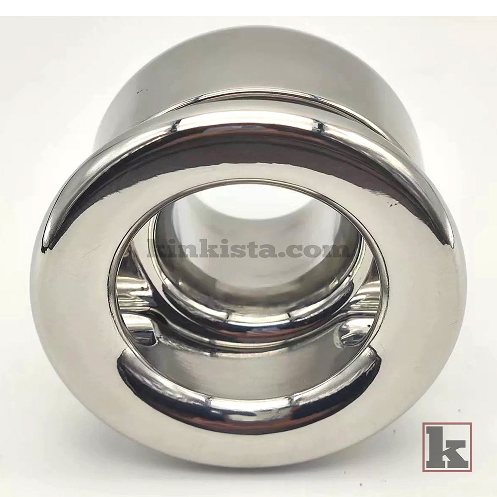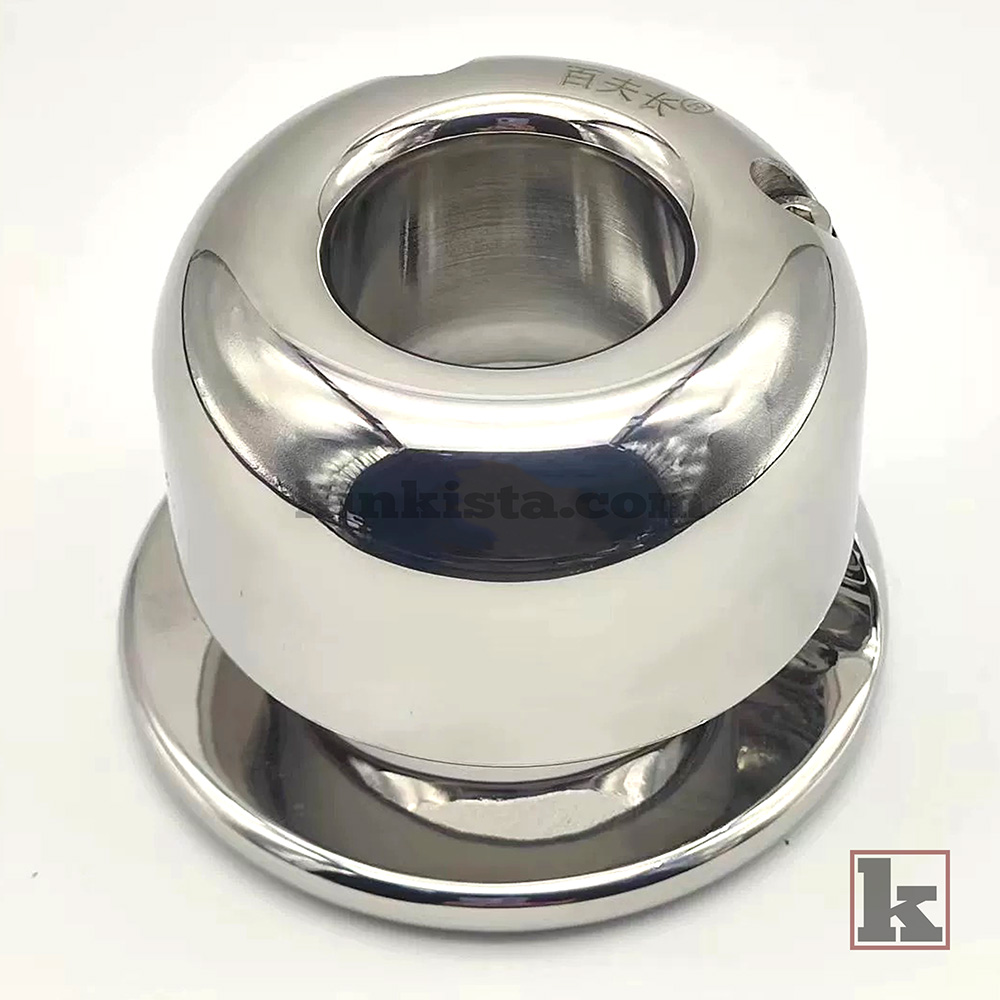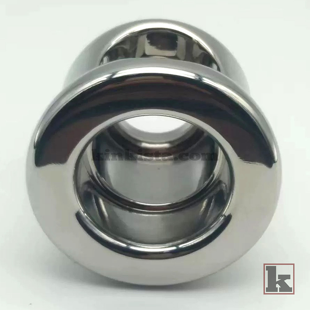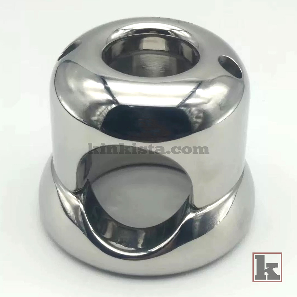A stainless steel weighted cock cage built to apply continuous downward weight, increasing stretch, pressure, and overall intensity for a more demanding experience.