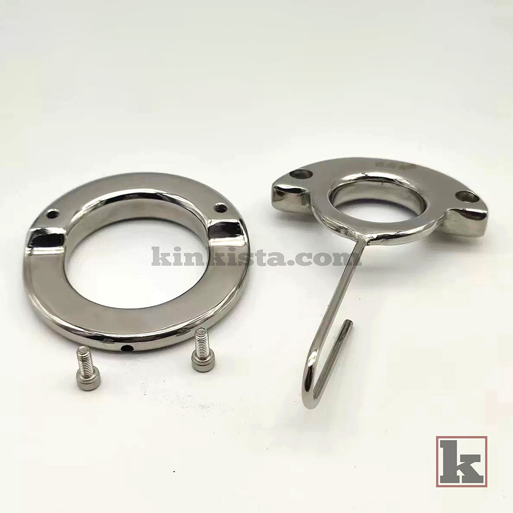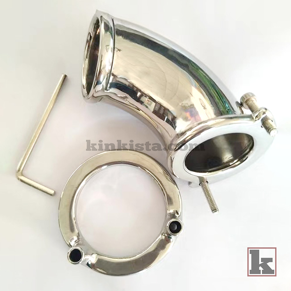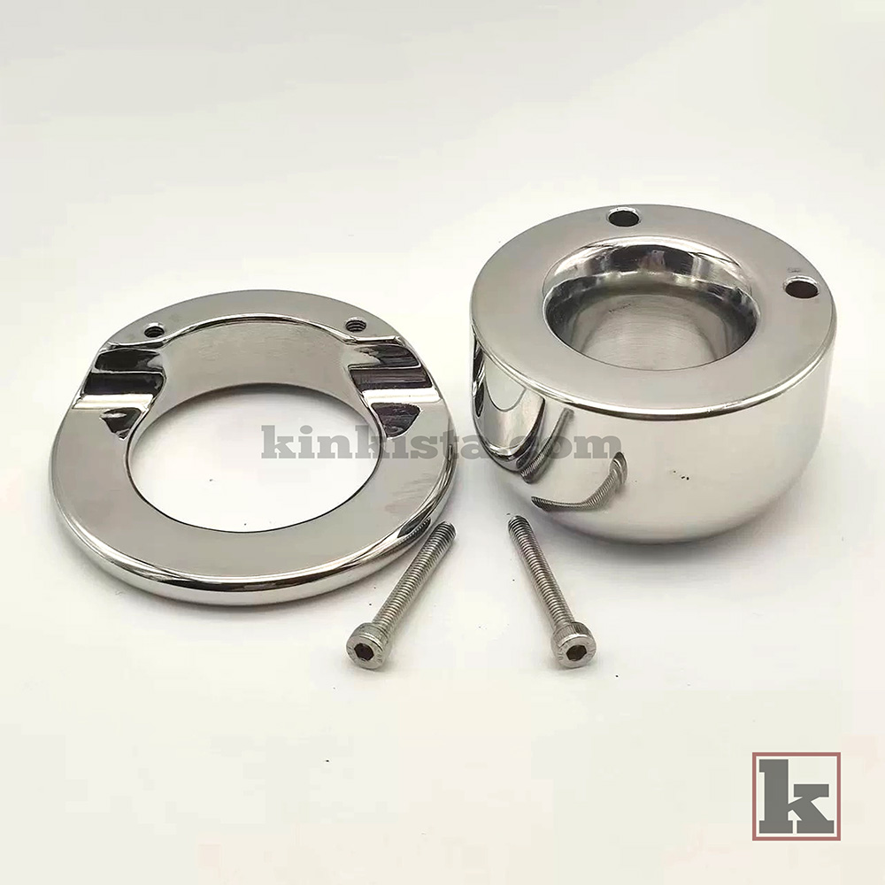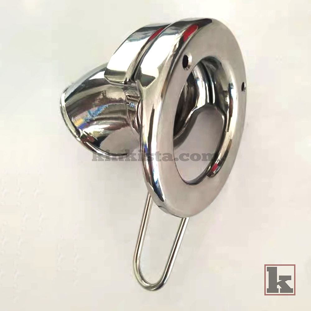 A stainless steel weighted cock cage built to apply continuous downward weight, increasing stretch, pressure, and overall intensity for a more demanding experience.